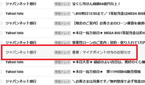 おそらく、銀行口座の管理画面ではポイントが付与されたかどうかは分からないと思いますので、うっかりこのメールを見逃さないようにしましょう。
